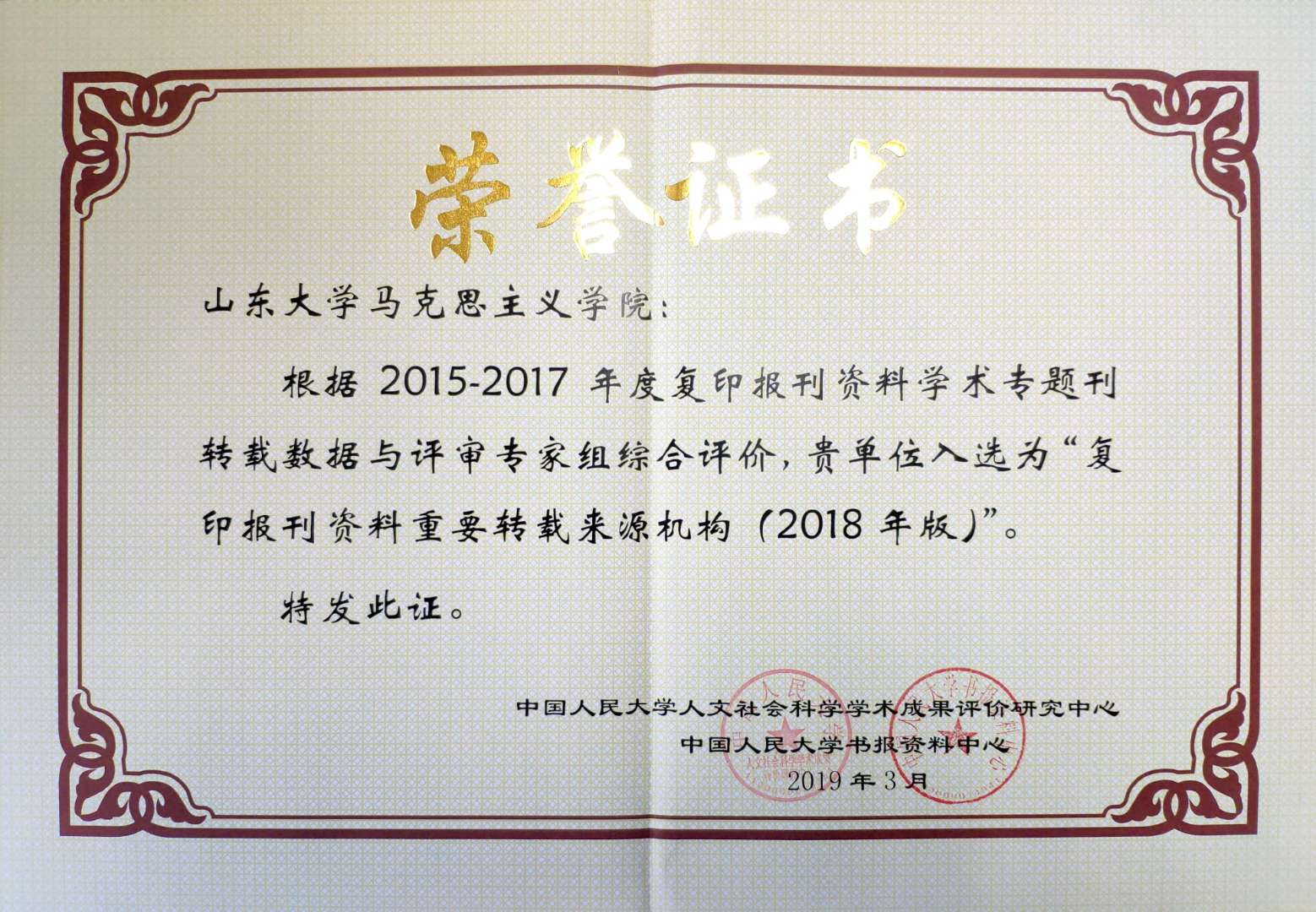 近日,中国人民大学人文社会科学学术成果评价研究中心、中国人民大学书报资料中心根据2015-2017年度复印报刊资料学术专题刊转载数据,经评审专家组综合评定,太阳成集团tyc151cc入选”复印报刊资料重要转载来源机构(2018年版)”。