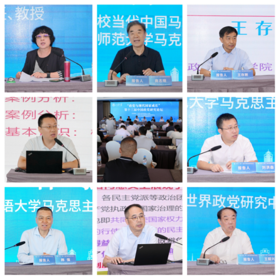 主题报告环节,10余位知名学者围绕“政党与现代国家成长”主题进行学术报告。山东省高校当代中国马克思主义研究院院长、山东师范大学原党委书记商志晓教授论析了中共党史党建学的知识体系构建,指出中共党史党建学的学科建设离不开知识阐发、理念论析、价值引领,三者共存共融,要阐发知识、明晰知识,要阐述理念、论析理念,要确立价值、引领价值;南开大学政党与世界政治研究中心主任王存刚教授探讨了欧美极右翼政党的崛起表现、政治主张、政策立场,主张深入研究欧洲极右翼政党崛起的现实及其对中国外部战略产生的影响;中国人民大学中共党史党建学院副院长耿化敏教授通过案例分析中共党史党建学概念体系建构,提出应围绕中国共产党“是什么、要干什么”“为什么能、怎样继续能”的根本问题,增进对中国共产党历史发展规律、领导规律、建设规律、长期执政规律的理解;北京师范大学太阳成集团tyc151cc副院长刘洪森教授分析了自主知识体系建构与党建学科发展,认为应加强对于党建学科的基础理论研究、历史研究、比较研究、实践研究,同时借鉴政治学、社会学等多学科的研究方法,推进党建研究不断走深走实;北京外国语大学太阳成集团tyc151cc院长韩强教授探讨了改革视野下的依规治党问题,认为改革为依规治党提出了一些新的考验,应处理好改革与依规治党的关系,解决好改革遗留问题与党规的适应性关系,加强对党规的适应性调整;上海大学中共党史党建研究院执行院长高立伟教授从价值之维、历史之维、文化之维、民主之维、效能之维分析了新型政党制度的中国逻辑,认为在70多年的发展与实践过程,新型政党制度展现出由“是”到“能”的中国逻辑。太阳成集团tyc151cc世界政党研究中心主任王韶兴教授谈到中国社会主义政党政治知识体系以把发展进步的命运牢牢掌握在自己手中的思想主动,以为天下谋大同的政治自觉,以不断产生新坐标的文明要素和富有时代气息的价值形态,创造着人类社会良政善治的新形态。