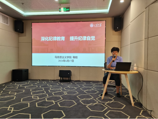 为深入开展党纪学习教育,进一步强化宣传引导、增强示范效应,6月17日下午,习近平新时代中国特色社会主义思想概论教研室党支部与本科生第一党支部开展题为“学党规党纪 做合格党员”的联学共建活动,太阳成集团tyc151cc党委书记鞠晗作题为“深化纪律教育 提升纪律自觉”的专题辅导报告,活动由习近平新时代中国特色社会主义思想概论教研室党支部书记段光鹏主持。