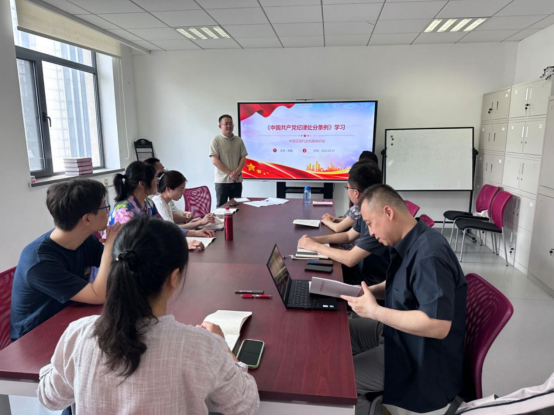 习近平新时代中国特色社会主义思想概论教研室围绕党纪学习教育开展集体备课。段光鹏副研究员以《中国共产党的纪律建设》为题,通过详实的史料、生动的例证、独到的解析,深入浅出地解读和阐释了党的纪律和规矩是什么、为什么、怎么做,系统梳理了中国共产党纪律和规矩的发展历程,介绍了《条例》的制定和历次修改过程,总结了百年来党的纪律建设的历史经验,明确了在新时代开展党纪学习教育的重要意义。