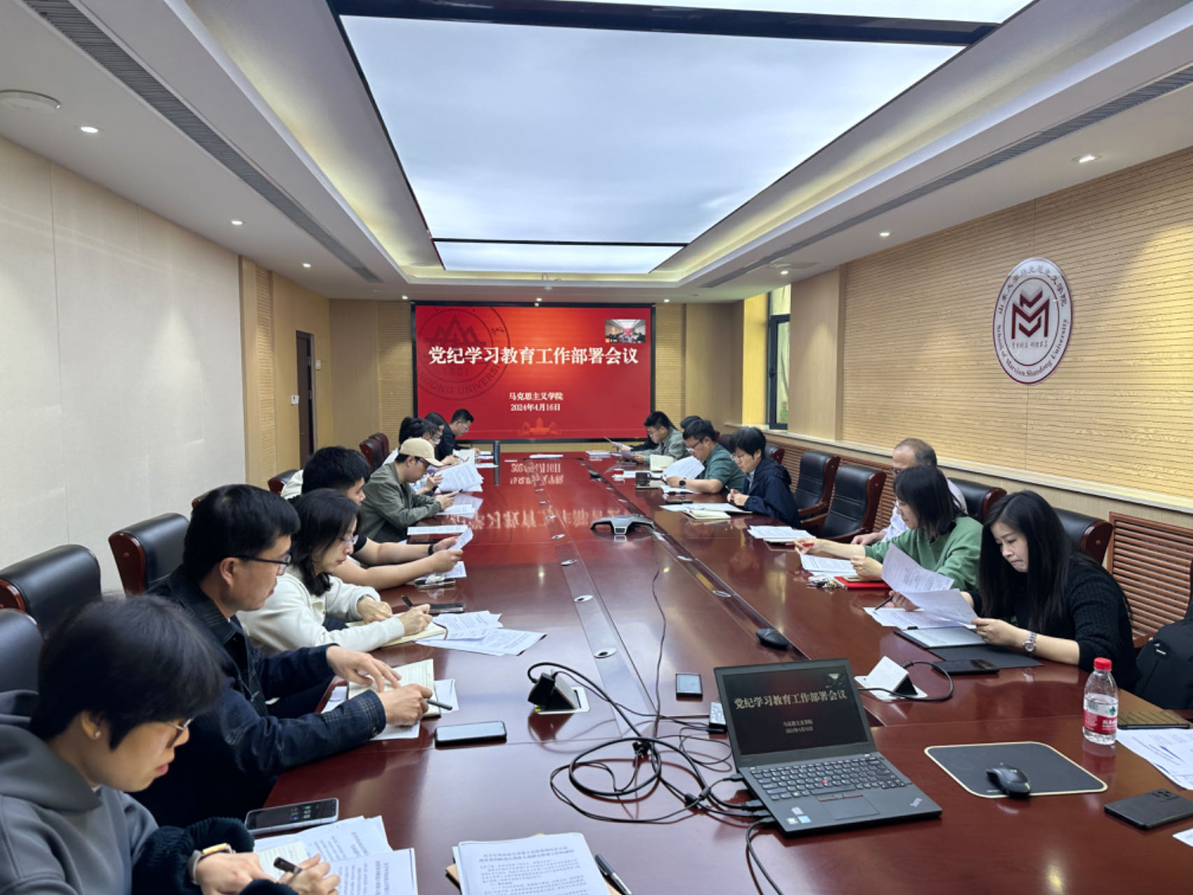 4月16日,太阳成集团tyc151cc党委召开党纪学习教育动员部署会。院党委书记鞠晗主持会议。副院长周金龙、党委副书记王海宁、副处级组织员齐子萍和全体师生党支部书记参加会议。