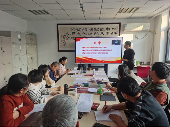 段光鹏指出,习近平总书记在全国教育大会上的重要讲话,对新时代教育事业取得的历史性成就、发生的格局性变化给予充分肯定,站在党和国家事业长远发展的战略高度,对新时代新征程建设什么样的教育强国、怎样建设教育强国作出深刻阐释和全面部署,是指导新时代新征程教育工作的纲领性文献,为建设中国特色社会主义教育强国提供了根本遵循和行动指南。教研室全体党员要认真学习、深刻领会习近平总书记重要讲话精神,把思想和行动统一到习近平总书记重要讲话精神和党中央决策部署上来,牢记使命、挺膺担当,为建设教育强国贡献力量。要坚持不懈用习近平新时代中国特色社会主义思想铸魂育人,坚持思政课建设与党的创新理论武装同步推进,不断提高思政课的针对性和吸引力,努力培养更多担当民族复兴大任的时代新人。