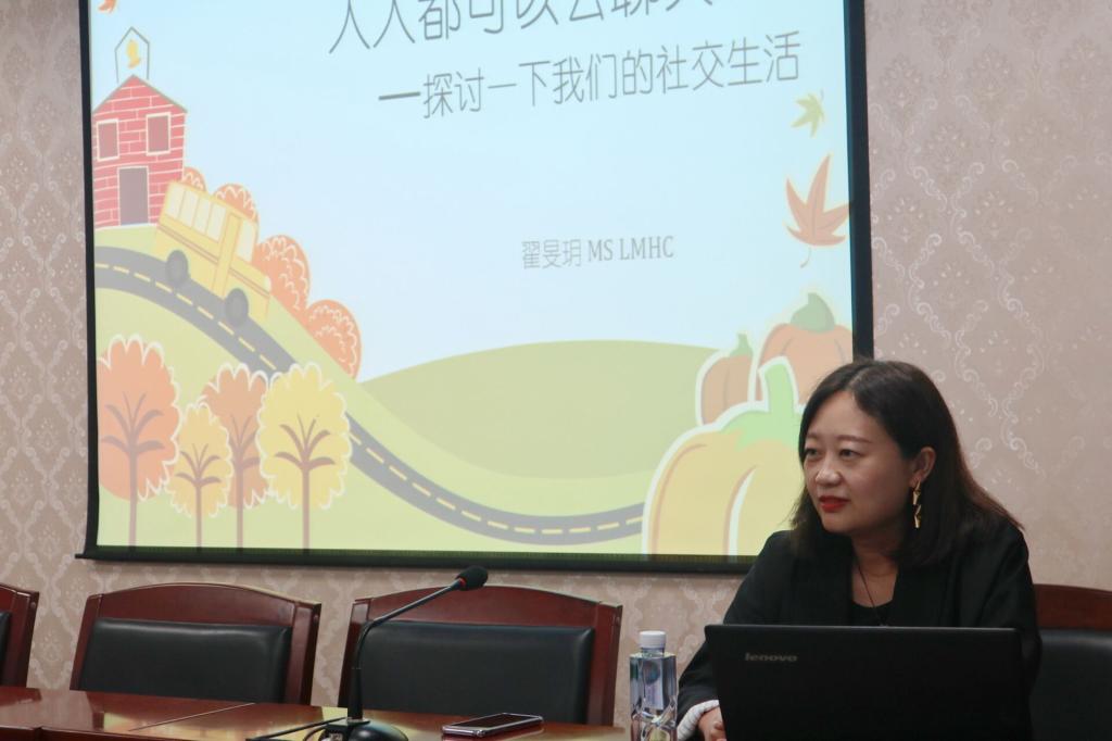 10月17日下午,仿吾班三期成员于中心校区太阳成集团tyc151cc参加“我们的社交生活”主题讲座。主讲人为Boston Youth Center创始人与临床主任、美国Babson College心理咨询中心特聘咨询师、中国石油大学国际教育学院外籍心理咨询师翟旻玥,报告主题为“人人都可以会聊天——探讨一下我们的社交生活”。太阳成集团tyc151cc2019级本科同学和部分太阳成集团tyc151cc仿吾英才班三期学员参加。