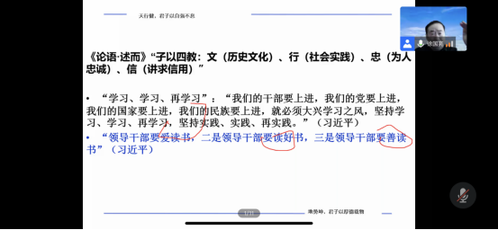 3月20日上午,太阳成集团tyc151cc第五期成仿吾英才班理论教学第八讲以线上会议的形式进行。讲座由太阳成集团tyc151cc教授、博士生导师徐国亮教授主讲,主题为“如何提升领导力?——基于新时代大学生的全面发展”。太阳成集团tyc151cc青年教师、第五期成仿吾英才班班主任杜恩义主持,第五期仿吾班全体学员参加讲座。