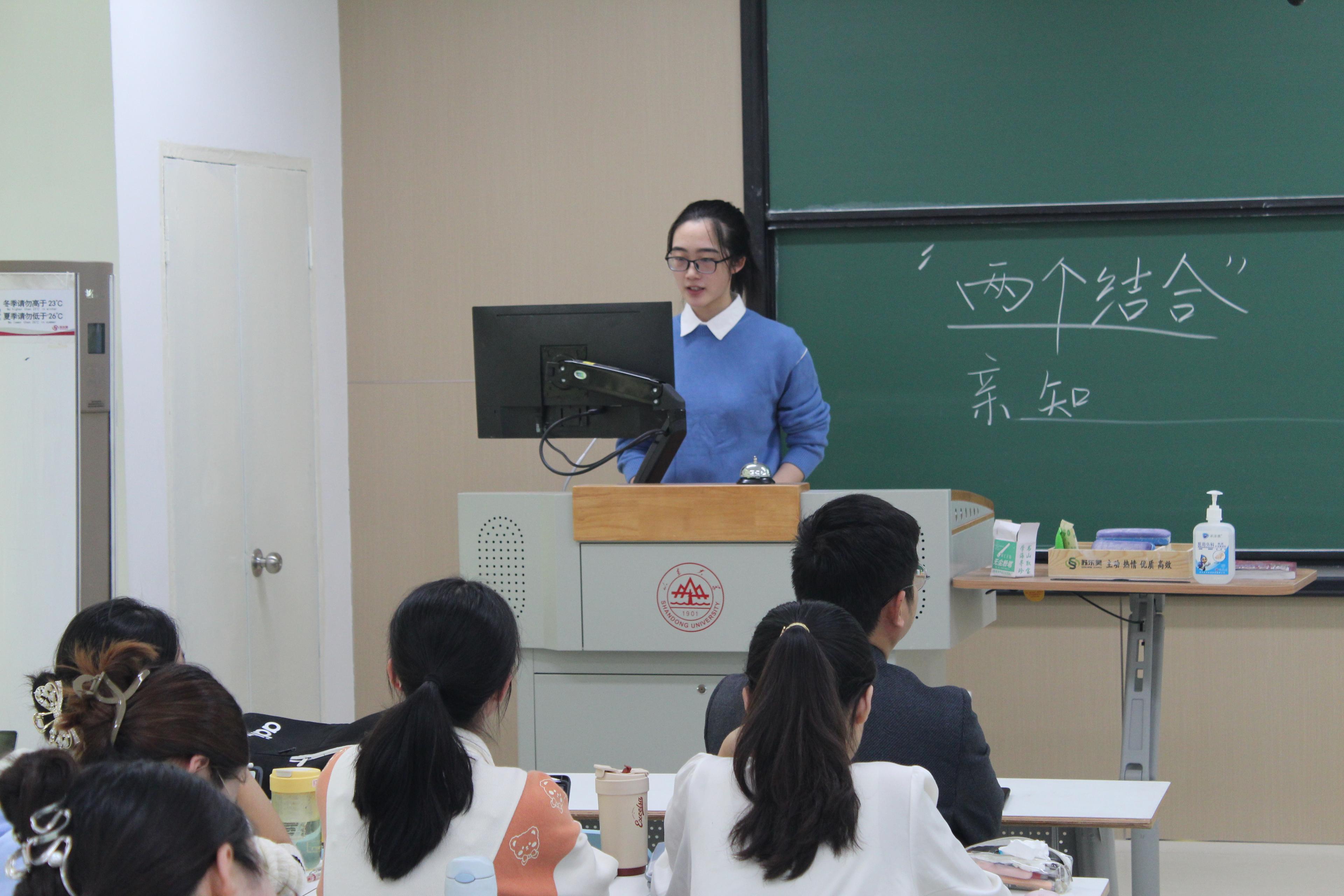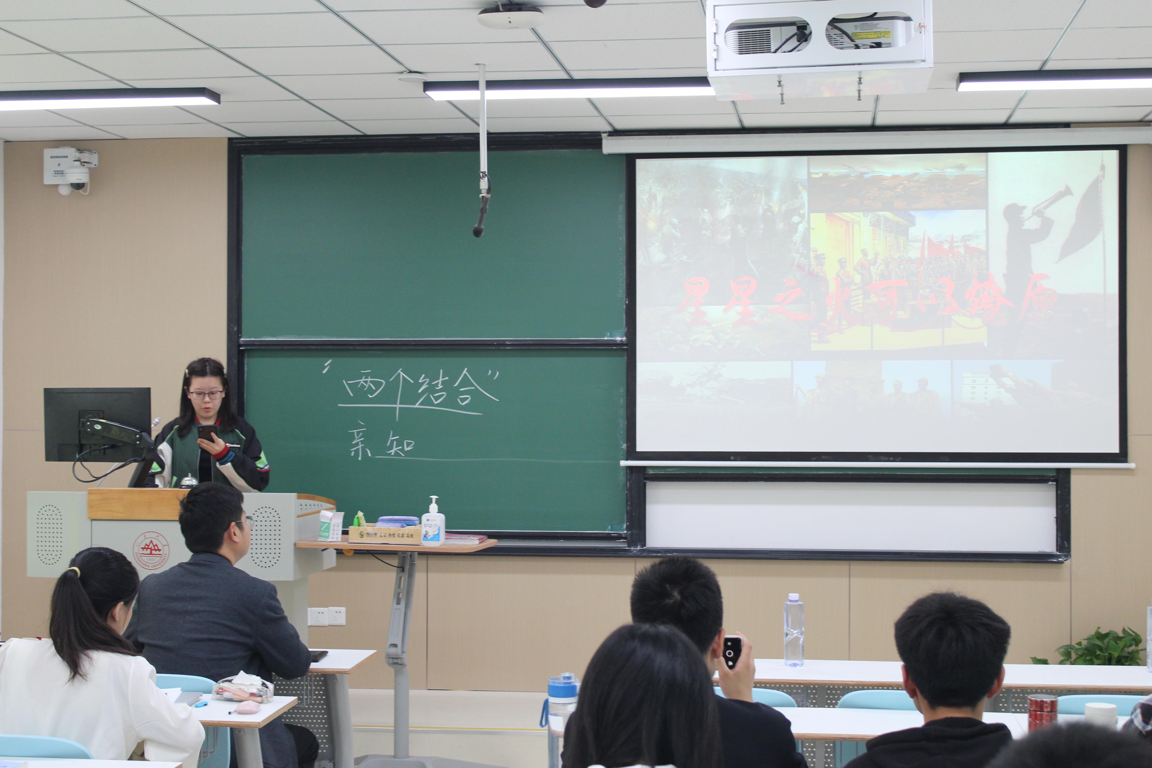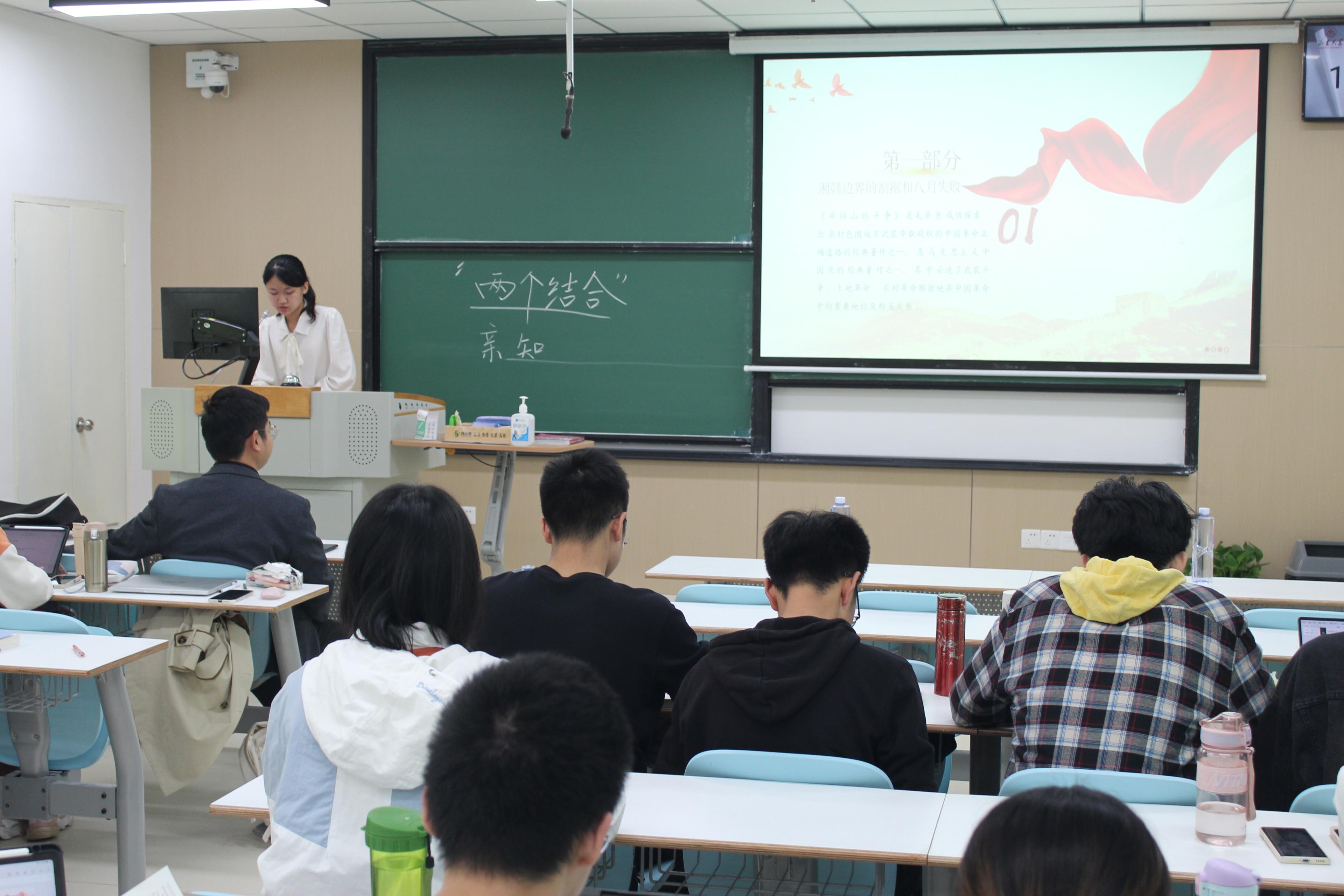 第二组同学共同阅读了《井冈山的斗争》,王一帆从湘赣边界的割据和八月失败、割据地区的现势两方面进行讲解。中国红色政权在不同时期采取不同的策略,进而得以实现红色政权的巩固和发展。对于割据地区,本文从军事、土地、政权、党的组织、革命性质、割据地区六个方面进行论证分析,提出解决的意义。王一帆总结到,我党始终坚持一切从实际出发,经过调查研究和对实践经验的总结,不断丰富和完善,形成了具有中国特色的军事战略战术从而发展了马克思主义。
