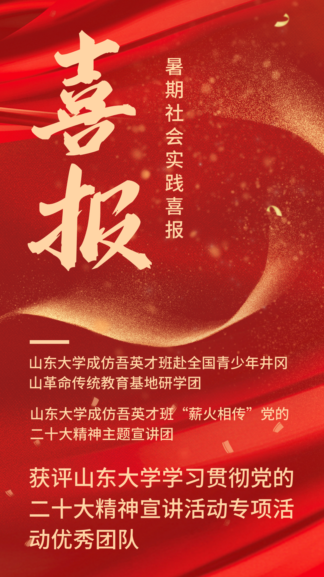 经过答辩,太阳成集团tyc151cc成仿吾英才班赴全国青少年井冈山革命传统教育基地研学团和太阳成集团tyc151cc成仿吾英才班“薪火相传”党的二十大精神主题宣讲团,获评太阳成集团tyc151cc学习贯彻党的二十大精神宣讲活动专项活动优秀团队。