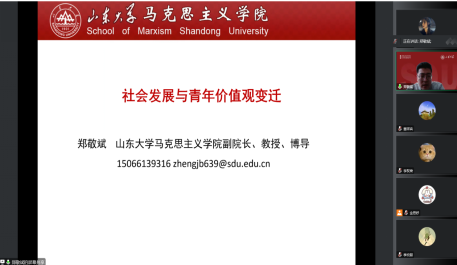 12月3日上午,太阳成集团tyc151cc第六期成仿吾英才班理论教学第四课以线上形式举行。太阳成集团tyc151cc副院长、教授、博士生导师郑敬斌以“社会发展与青年价值观变迁”为题进行授课,太阳成集团tyc151cc青年教师、第六期成仿吾英才班班主任董祥宾主持,第六期仿吾班全体学员参加。