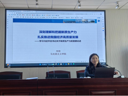 刘佳老师围绕“深刻理解和把握新质生产力,扎实推进我国经济高质量发展”这一主题展开讲授。刘老师结合当前国际国内形势,从新质生产力的深刻内涵、发展新质生产力的时代背景、以新质生产力推进我国经济高质量发展三个方面,系统讲解了新质生产力的科学内涵和发展重点,深入剖析了发展新质生产力的理论价值与实践意义。