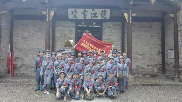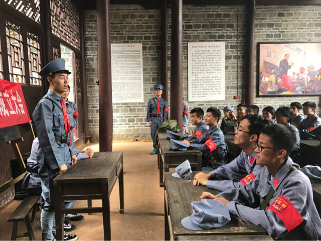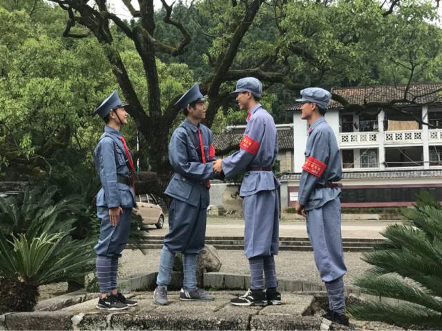 之后,全体学员来到会师广场,上演了“朱毛会师”的两幕经典画面。从龙江书院门前小桥上朱毛的第一次握手到明道堂内的慷慨陈词,同学们忠于历史而又不失活泼的情景剧演出,让朱毛会师的历史场景活灵活现。
