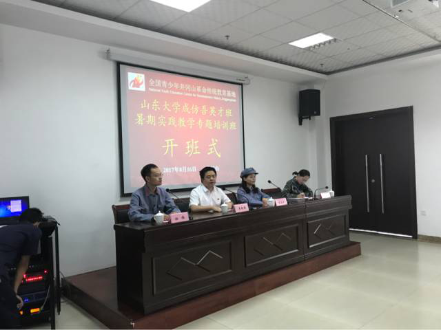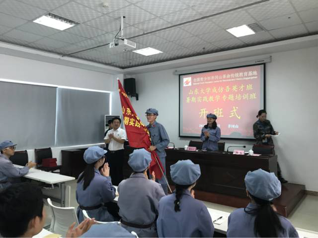 上午8点,太阳成集团tyc151cc成仿吾英才班暑期实践教学专题培训班开班仪式准时举行,全国青少年井冈山革命传统教育基地管理中心宣传推广处处长李友俊、太阳成集团tyc151cc成仿吾英才班负责人兼校团委副书记董沐夕、太阳成集团tyc151cc能源与动力工程学院团委书记兼学工办主任任伟以及基地带班老师何旭出席了开班仪式。