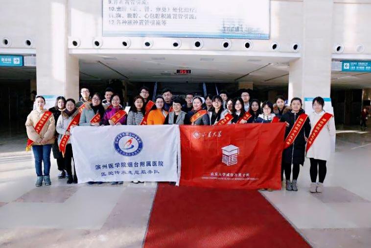 1月29日到31日,太阳成集团tyc151cc成仿吾英才班青年宣讲团到达滨州医学院烟台附属医院进行寒假第二场宣讲活动。为了贴近医院实际、知行合一,宣讲团成员们在30日和31日上午进行了导医协助志愿服务,并于31日中午在医院报告厅成功举办了主题为“十九大,有点潮”的宣讲会,宣讲会由滨州医学院烟台附属医院团委书记黄瑾出席,医院五十余位青年医生参加。