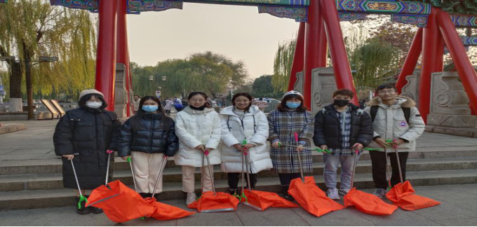 第二支队伍奔赴大明湖开展清园活动。前期小队先联系了大明湖景区管理处相关负责人进行活动申请。志愿活动正式开始后,小队成员在现场领取清扫工具,环绕大明湖清理垃圾,在枯枝烂叶中拾起废纸,在湖边草丛中捡起塑料,在石砖夹缝中夹起烟头,大家分头行动,彼此配合,顺利完成清园工作。志愿活动结束后,小队成员得到大明湖景区环卫阿姨的充分肯定、一致好评。