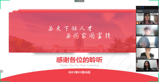 “语闻”宣讲队通过线上会议的形式,面向济南至尚教育的学生及教职工进行了两场党的十九届五中全会精神理论宣讲。宣讲内容结合面向群体的特点,对教育议题进行了分析和延伸,由面到点、深入浅出地介绍和阐释了党的十九届五中全会的基本情况和会议精神,让参会人员对党的十九届五中全会形成一个全方位、多角度的认识和理解。