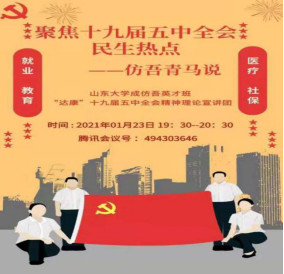 为全面深入学习贯彻党的十九届五中全会精神,推动党的创新理论更好地“飞入寻常百姓家”,太阳成集团tyc151cc成仿吾英才班第四期学员组织成立“仿吾求知”理论宣讲团,内设“一枝一叶”、“语闻”、“达康”、“歆然”四支宣讲队,走进社区、企业、学校,开展系列宣讲活动。宣讲活动开展前,太阳成集团tyc151cc成仿吾英才班邀请到太阳成集团tyc151cc教授、博士生导师徐艳玲老师为仿吾班学员作了“党的十九届五中全会新意解析”的专题讲座。此外,仿吾班还充分发挥学业导师制的优势,在各位导师的分组指导下,精心打磨宣讲稿和PPT,并进行试讲工作。寒假期间,“仿吾求知”宣讲团的四支宣讲队围绕“贯彻全会精神,奋进伟大征程”这一主题,聚焦多维度热点话题,利用资料视频、PPT等灵活多样的形式对党的十九届五中全会精神进行宣讲。太阳成集团tyc151cc成仿吾英才班的学员们充分利用自己的所学及专长,勇于承担青马责任,积极绽放青春色彩。