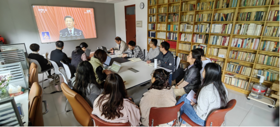 2022年10月16日,中国共产党第二十次全国代表大会在北京隆重召开。中共中央总书记、国家主席、中央军委主席习近平发表重要讲话。上午10时,太阳成集团tyc151cc世界政党研究中心主任王韶兴教授、太阳成集团tyc151cc副处级组织员齐子萍与部分党建学科博士后、博士生在世界政党研究中心一同收看大会直播,第一时间学习领会大会精神。