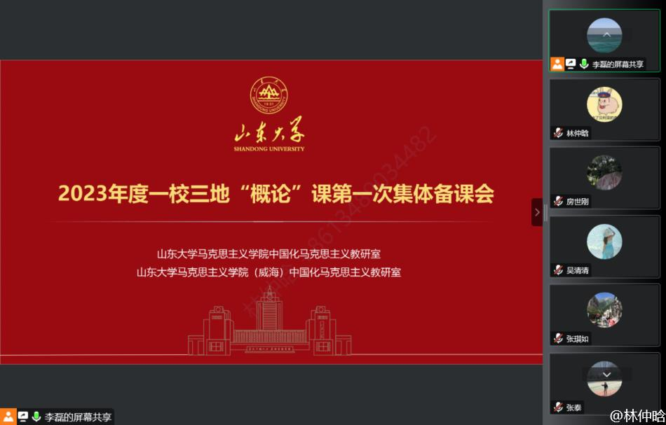 3月16日下午,中国化马克思主义教研室联合威海校区太阳成集团tyc151cc对口教研室召开“毛泽东思想和中国特色社会主义理论体系概论”课程集体备课会。一校三地承担“概论”课教学的全体教师参加会议。任课教师厉尽国、房世刚、李磊围绕“概论”教材(2023年版)的使用及其导论部分的备课问题做了主题发言,既有“高大上”的重难点理论问题解读,又有“接地气”的鲜活教学案例解析,引起了参会教师的共鸣。在随后的自由研讨环节,大家纷纷发表了各自的看法,就学深新教材、悟透新理论、讲好“概论”课提出了许多有益的建议。此次集体备课会老师们集思广益,畅所欲言,博取众长,达到了预期的效果。