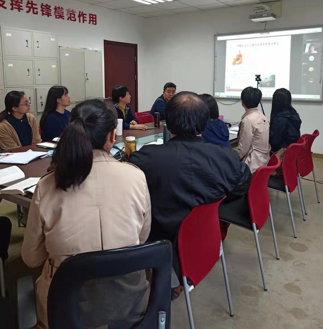 为深入贯彻习近平总书记关于教育的重要论述特别是在学校思想政治理论课教师座谈会上的重要讲话精神,推动落实《关于深化新时代学校思想政治理论课改革创新的若干意见》,切实帮助概论课教师更好把握《毛泽东思想和中国特色社会主义理论体系概论》(2021年版)修订的基本精神和主要内容,持续提高概论课教学质量和效果,在全体成员参加了教育部新教材线上教学培训的基础上,10月8日下午,中国化马克思主义教研室开展了集体备课会。备课会由中国化马克思主义教研室副主任董沐夕主持,中国化马克思主义教研室全体教师参加(青岛校区的老师线上参加)。