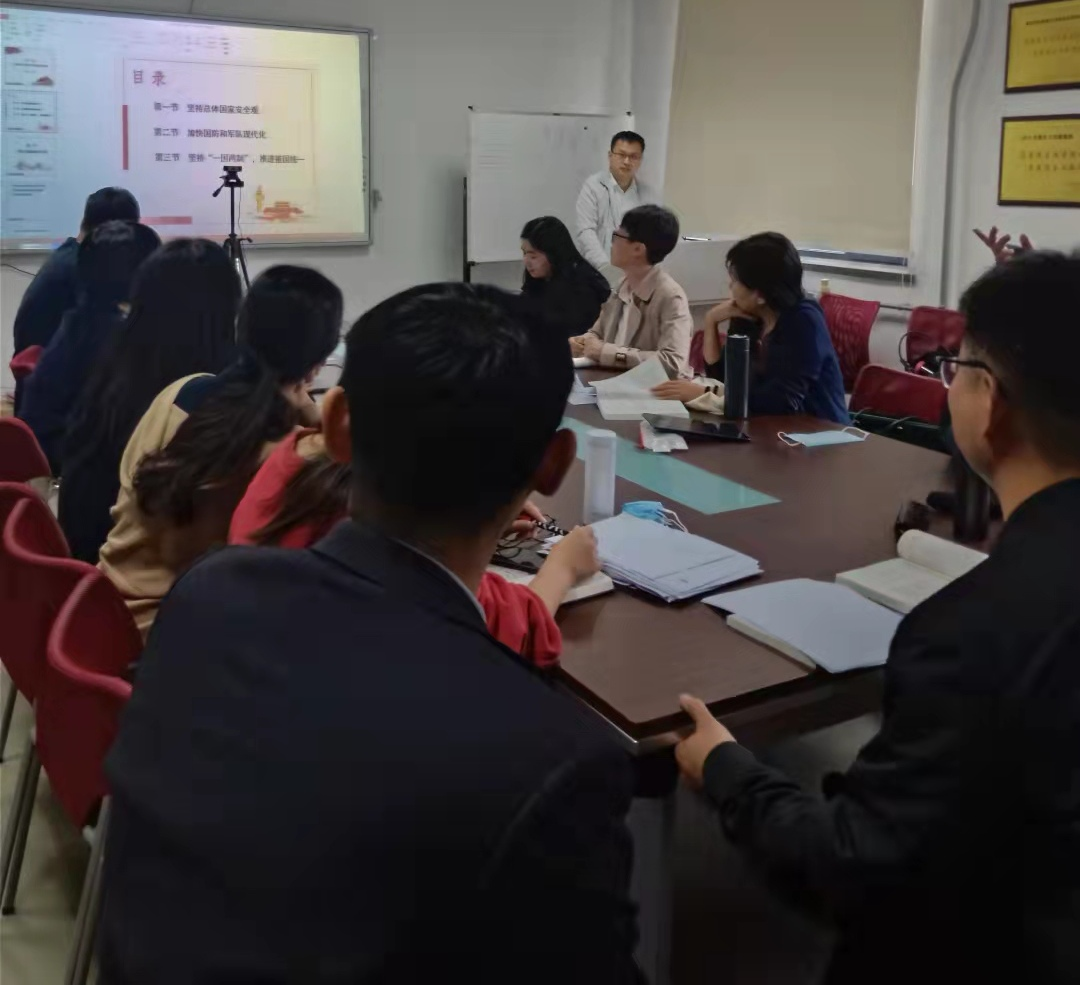 备课会上,任课教师们各抒己见,发言极具政治高度、思想深度、知识广度、能力强度,富有启发性和针对性的建议也发人深省。备课会在民主、有序的讨论氛围中顺利结束,并取得良好成效。与会教师纷纷表示,将根据备课会要求用好新教材,结合教材修改变化合理安排本学期教学内容,探索高质量教学的多种有效实现形式,以提高教学实效为目标尽职尽责上好“概论课”,让党的创新理论进课堂、育新人,努力使“概论课”成为学生诚欢诚喜、深受裨益的课程。
