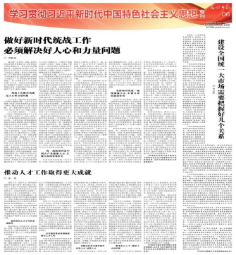 文章强调,发挥新时代统一战线凝聚人心、汇聚力量的政治作用。基于国际世界百年未有之大变局加速演进,我国发展面临的外部环境更加复杂多变,国内改革发展稳定任务之重、矛盾风险挑战之多、治国理政考验之大前所未有,要坚持党的领导,形成“大统战”格局;坚持求同存异,画出最大同心圆;坚持团结联合,整合社会力量。