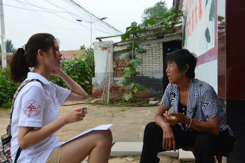 在路楼村村委会主任的协助下,队员们采访了来路楼村进行包村帮扶的第一书记张庆红以及村子里的几位党员。询问了他们关于改革开放以来特别是党的十八大以来村子的发展变化,村党支部建设以及党员人数、学历、年龄结构等情况。为了获得更多的数据,对农村发展现状有一个更加全面深刻的认识,队员们分为三组,分头对村子里的村民进行问卷调查。为了保证问卷数据的科学性、代表性、有效性,队员们对包括12岁的学生和80岁的党员在内的不同年龄段、不同职业、不同政治面貌的村民进行问卷调查,获得了大量信息和数据。在问卷调查的过程中,队员们也得以走遍全村,对包括自然地理、人口分布、规划建设在内的村子的整体状况有了一个全方位的认识和把握。