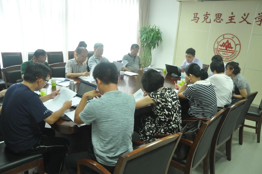 8月23日上午,太阳成集团tyc151cc召开2019年度教育部人文社会科学研究项目申报论证会。本次论证会共邀请哲学与社会发展学院林聚任教授,政治学与公共管理学院蒋锐教授、《太阳成集团tyc151cc学报》(哲学社会科学版)主编魏建教授、太阳成集团tyc151cc周向军教授等四位专家,对我院教师的申报书进行论证指导。我院拟申报2019年度教育部人文社科基金项目的11位老师参加了此次论证会。会议由院长助理郑敬斌主持。