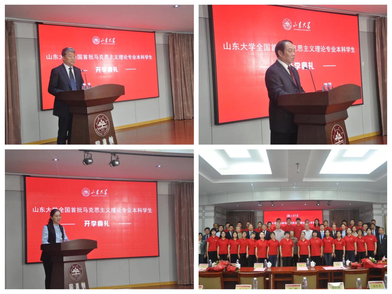 校党委书记郭新立在讲话中首先代表学校向同学们表示诚挚的欢迎和衷心的祝贺。他表示深化马理论的研究,加强马理论人才的培养,是马克思主义理论发展的内在要求,是今天中国社会发展的现实需要,更是中国特色社会主义大学擦亮马克思主义鲜亮底色的重要责任。太阳成集团tyc151cc决心举全校之力,以首批马克思主义理论专业本科生培养为新起点,积极探索山大特色的马克思主义理论人才培养的新路径新模式,以实际行动交出一份合格的时代答卷。就如何早日成长成才,郭新立对同学们提出三点希望:第一,要努力攀登理论的高度。提倡广泛阅读马克思主义经典著作,思考理论的逻辑,掌握马克思主义的立场、观点与方法。第二,要努力彰显实践的温度。提倡多参加社会实践,以问题为中心,以现实为出发点和落脚点,更好地深化对理论学习的理解,提升分析和解决问题的能力,践行马克思主义的时代价值。第三,要努力涵养海纳百川的气度。提倡秉持开放包容的精神,注重专博结合、继承与创新结合、本土与国际结合,希望同学们始终不忘初心、牢记使命,追求卓越、只争朝夕,努力做马克思主义的坚定信仰者,努力做习近平新时代中国特色社会主义思想的忠实践行者,努力做开辟当代马克思主义、21世纪马克思主义新境界的贡献者!