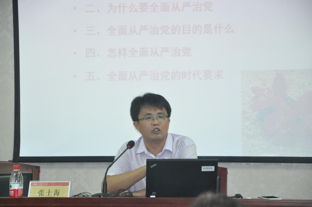 首先,徐艳玲、张士海代表学院对来访客人表示诚挚的欢迎。紧接着,徐艳玲作了主题为《全球化与中国特色社会主义》的报告。徐艳玲指出,要把中国特色社会主义放置于全球化这一宏大叙事中加以历史的、动态的观照。她在分析了全球化与中国特色社会主义历史演进的关系后指明,在当下逆全球化思潮汹涌的新语境下,中国通过“一带一路”积极推动全球化,有助于实现全球化升级转型,这是中国共产党人对全球化规律能动驾驭的体现;表明中国特色社会主义是与全球化紧密联系、符合全球化发展规律的社会主义,这是中国特色社会主义自信最宏阔的证明。随后,张士海作了题为《关于全面从严治党的几点思考》的报告,围绕谁要全面从严治党、为什么要全面从严治党、全面从严治党的目的、怎样全面从严治党和全面从严治党等五个方面展开了论述。最后,双方就报告的相关问题进行了积极探讨。