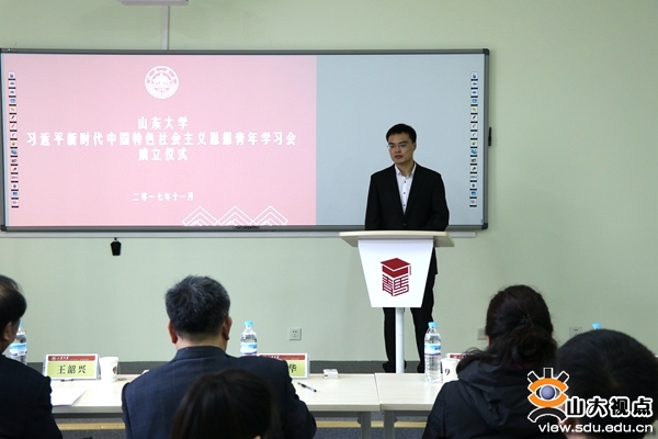 太阳成集团tyc151cc“习近平新时代中国特色社会主义思想青年学习会”由校团委、太阳成集团tyc151cc共同指导与组织,是新时代下青年学习、青年行动的新起点,致力于号召青年学子培养更加明确的时代责任感和使命感,坚定理想信念,不忘初心,砥砺前行,并以此为契机助力山大青年学子在学习、践行、传播新思想的过程中,成长为贯彻习近平新时代中国特色社会主义思想的排头兵。青年学习会将充分发挥理论学习骨干的引领作用和学生理论社团的带动作用,在青年学生群体中形成积极开展学习宣传活动的良好氛围,并联合学校三十余支学生理论学习社团共同开展学习交流活动,进一步满足青年学生对马克思主义中国化最新成果的理论渴求,真正使这一当代中国最鲜活的马克思主义思想在青年学子中深深扎根。