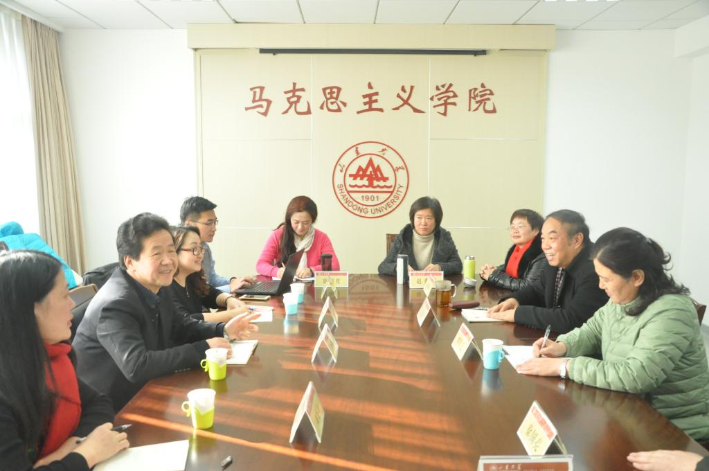 12月4日下午,上海财经大学太阳成集团tyc151cc院长章忠民等一行来我院进行交流学习。我院院长王韶兴、院党委书记刘明芝、思想道德修养教研室主任徐国亮、马克思主义基本原理教研室主任刘雅静和中国化马克思主义教研室主任赵秀丽及院长助理郑敬斌参与了座谈交流。