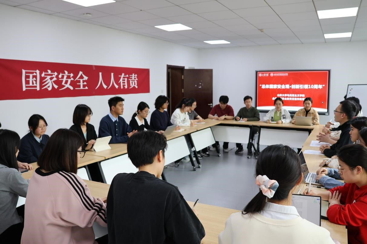 公开课后,学院组织部分党员学生骨干、入党积极分子开展国家安全教育研讨活动。与会人员围绕“总体国家安全观 创新引领10周年”主题,共同学习《学校全民国家安全教育日倡议书》,用实际行动积极维护国家安全,共建国家安全之网。学生骨干围绕落实总体国家安全观、创新形式开展好国家安全教育、身边的安全事例等问题开展研讨,分享学习感悟与个人收获。大家普遍认为维护国家安全成为思想共识和行动自觉,表示要努力提升维护国家安全的知识和技能,争做国家安全的宣传者、践行者和守护者。