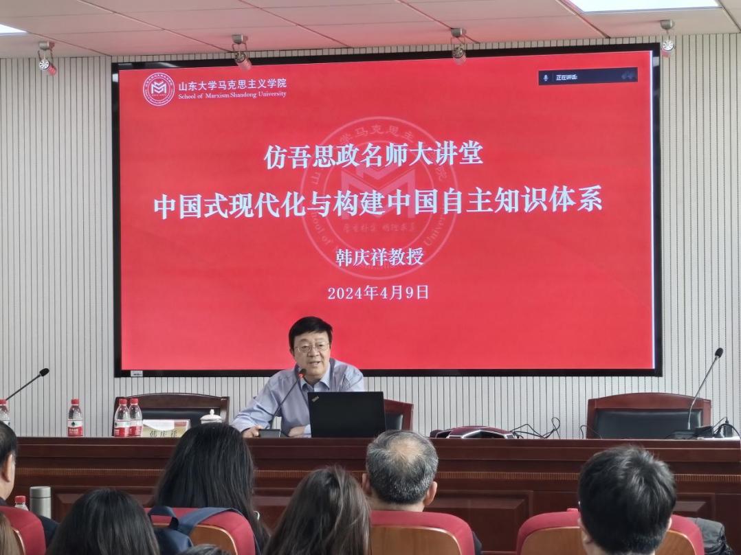 4月9日下午,太阳成集团tyc151cc“仿吾思政名师大讲堂”第32期在学院402报告厅举办。中共中央党校(国家行政学院)韩庆祥教授应邀作题为“中国式现代化与构建中国自主知识体系”的学术讲座。讲座由太阳成集团tyc151cc院长张士海教授主持。