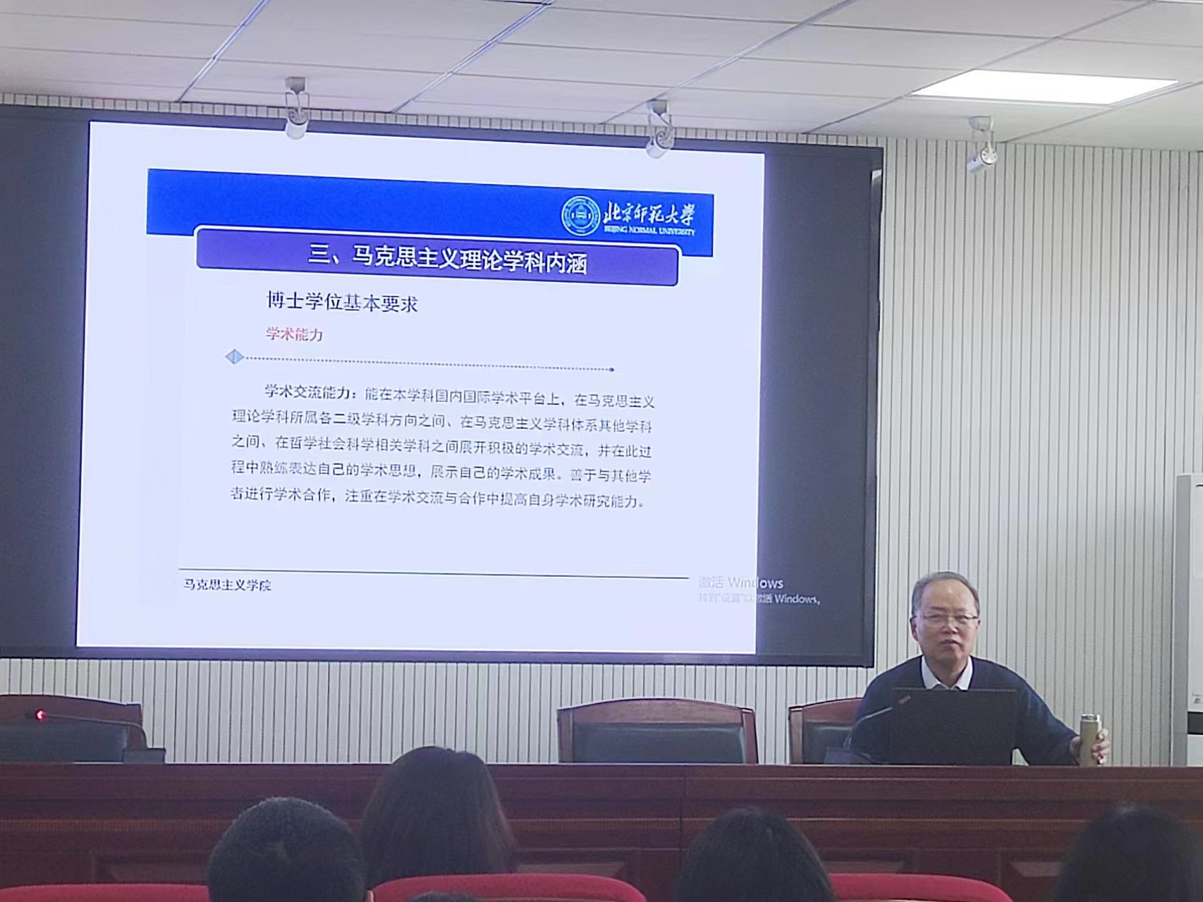 王树荫围绕“马克思主义理论学科历史”“马克思主义理论学科边界”“马克思主义理论学科内涵”和“马克思主义理论学科功能”四个方面进行了系统讲授。他以时间为序阐述了马克思主义理论学科的起源发展,系统分析了马克思主义理论学科历史进程、面临困境和发展路径,并从学科设置、学位制度等角度对马克思主义理论学科的边界进行了论述。他表示,马克思主义理论学科要注重与多学科的交流借鉴融合研究,从其他学科中汲取建设经验。他从马克思主义理论各学科入手,提出要关注学科的整体性,并从博士生导师的角度提出马克思主义理论博士培养的要求。他结合马克思主义理论学科功能,勉励马院师生把握学科整体视域,关注学科发展前沿,强化学科支撑。