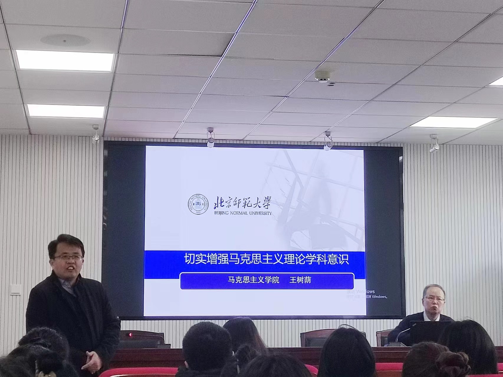 3月12日上午,太阳成集团tyc151cc“仿吾思政名师大讲堂”第28期在学院402报告厅举办。北京师范大学太阳成集团tyc151cc王树荫教授应邀作题为“切实增强马克思主义理论学科意识的几点思考”的学术讲座。院长张士海教授主持讲座。