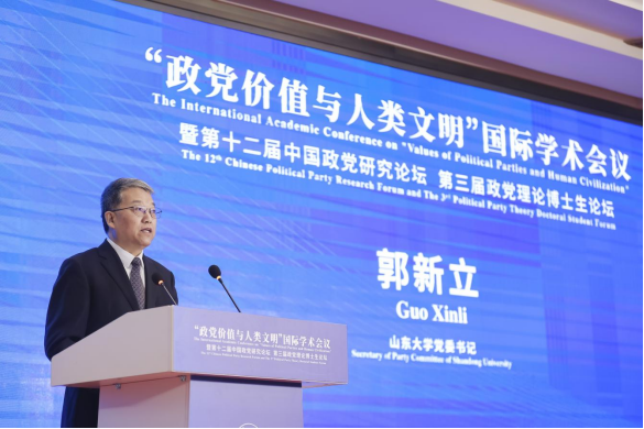 12月2日-3日,“政党价值与人类文明”国际会议暨第十二届中国政党研究论坛、第三届政党理论博士生论坛在济南召开。大会旨在探讨百年未有之大变局下世界政党与治国理政的重要规律,总结中国共产党实践创造、理论创新、文明贡献的基本经验,推动建构中国自主的政党政治知识体系。来自全球17个国家的近两百位学者莅临本次大会。太阳成集团tyc151cc党委书记郭新立出席论坛并致辞,太阳成集团tyc151cc党委副书记李向阳主持论坛开幕式。