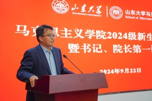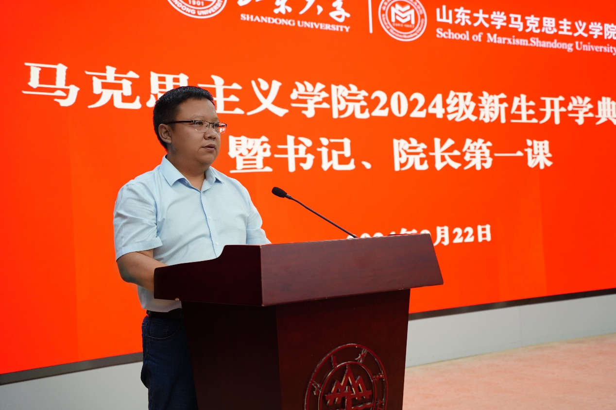 院长张士海教授代表山大马院全体师生对加入学院大家庭的2024级全体新同学表示衷心的祝贺。他寄语新生将“厚重朴实、明理求真”的山大马院院训继续传承下去,要老老实实做人,始终坚持诚实守信、表里如一的为人准则,将勤恳奉献老实做人的理想信念当作自己的立身之本;要踏踏实实做事,始终保持强烈的事业心与高度的责任感,只有“想干事”、“肯干事”才能“能干事”、“干成事”;要认认真真做学问,始终贯彻笃行明理、务实求真的学术要求,立志做出大学问、真学问,立时代之潮头、通古今之变化、发思想之先声。他强调,马院学子应坚定自信自立自强的理念,潜心学术、立足经典、积极进取、努力拼搏,与祖国和人民共命运、与时代和社会同前进,谱写人生最美好的华章。