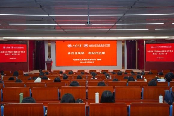在校生代表2021级博士研究生韩学亮同学结合个人在山大马院六年的成长经历,与新生分享了三点学习和研究马克思主义的心得体会,要争做“崇实求新”的山大人、要争做“明理求真”的马院人、要学会做温和而坚定的自己。2024级本科生刘晓澄以传承文化、响应时代和追寻真理为切入点,表示要勤奋学习,努力提高专业素养,为将来的发展打下坚实的基础;要积极实践,走出课堂,奋力书写为中国式现代化挺膺担当的青春篇章。2024级硕士生刘明璇表示要志存高远,寻求不落窠臼的人生意义;要自强不息,寻求勇毅前行的驱动力量;要立志成才,在追寻意义感的道路上坚定向前。