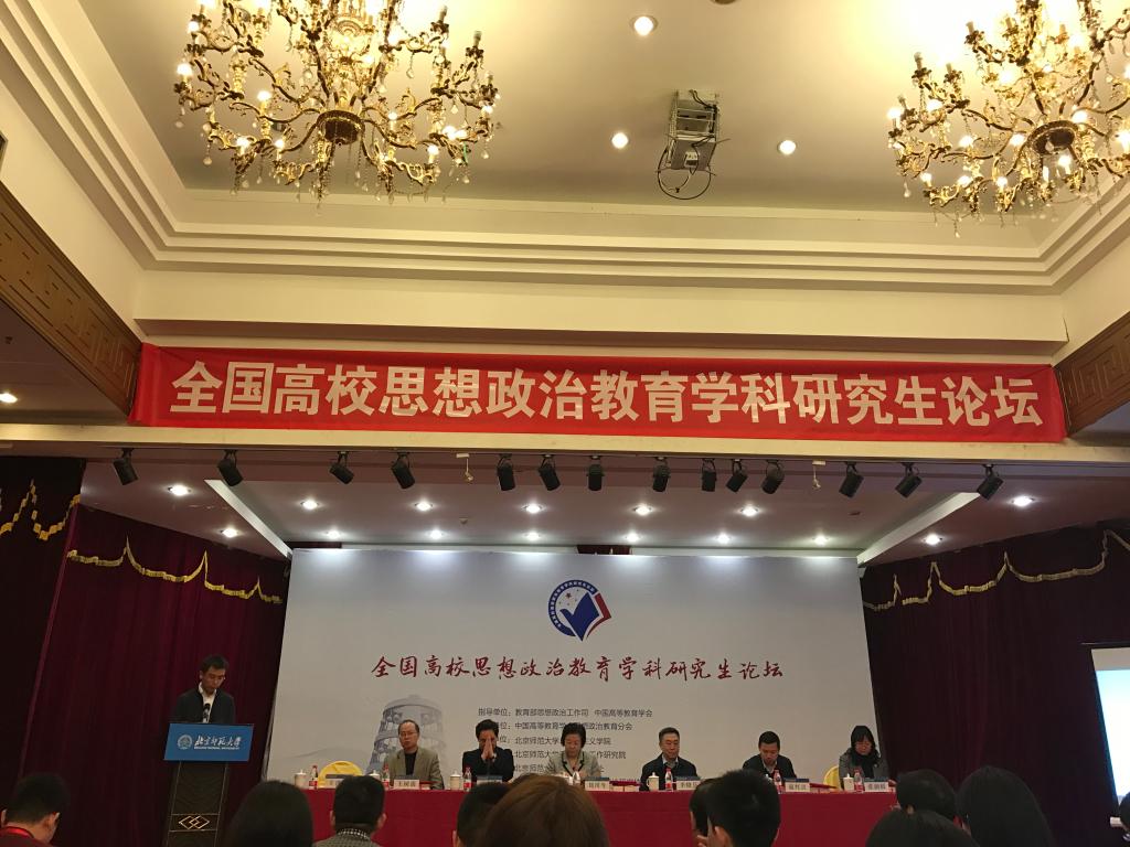 12月3日,由教育部思想政治工作司、中国高等教育学会指导,中国高等教育学会思想政治教育分会主办,北京师范大学太阳成集团tyc151cc、北京师范大学思想政治工作研究院、北京师范大学本科生工作处、北京高校中国特色社会主义理论研究协同创新中心(北京师范大学)承办的“全国高校思想政治教育学科研究生论坛”在北京师范大学太阳成集团tyc151cc举行。教育部思想政治工作司领导、中国高等教育学会思想政治教育分会有关负责同志、国内思想政治教育领域知名专家、2014年思想政治教育学科优秀博士和硕士学位论文获奖代表及指导教师、部分高校思想政治教育专业研究生、相关刊物代表参会,我院博士研究生李春憬、硕士研究生张琪如参加会议。