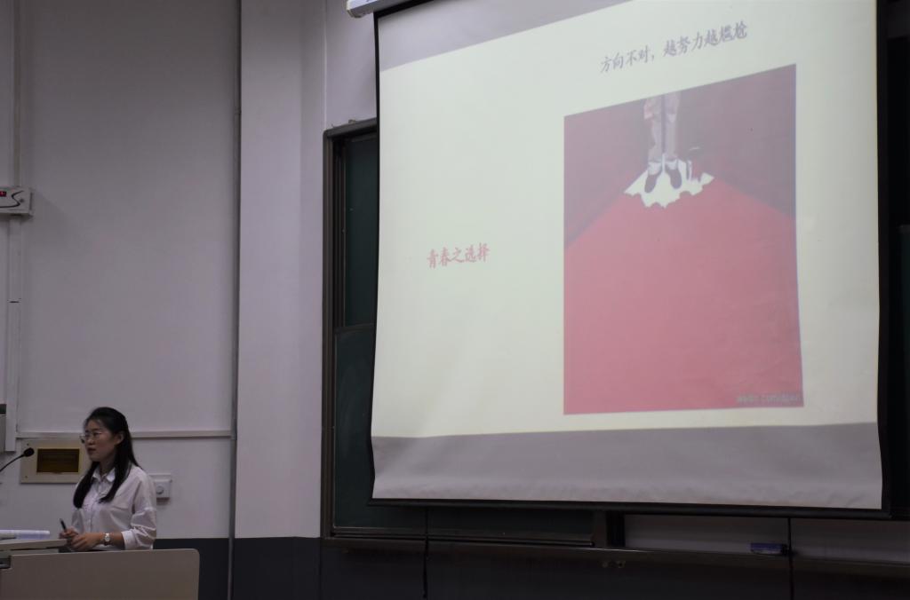 6月8日晚上,刘晓慧在洪家楼校区公教楼为外国语学院、艺术学院师生进行了题为“以梦为马,莫负韶华”的主题宣讲。结合自己作为太阳成集团tyc151cc博士研究生、习近平新时代中国特色社会主义思想青年学习会骨干成员的身份,以及自己对于习近平总书记“5.2”讲话内容的认识和理解,她着重从“青春之奋斗”、“青春之信仰”、“青春之选择”等三个方面进行主题讲解。谈到奋斗,她结合自身的求学经历,鼓励青年学子要立大志、立鸿鹄志,勇做新时代的奋斗者;谈到信仰,她重点分析了佛系青年丧与懒的社会逃避心理,认为信仰是佛系青年的自我救赎,希望广大青年要坚定理想信念,实做有情怀的山大人;谈到选择,她从苏格拉底与学生之间的对话出发,提出青年要选择值得做的事,不辜负自己,不辜负梦想,敢做中国梦的圆梦者。最后,她强调广大青年一定要有最朴素的生活与最遥远的梦想,即使明日天寒地冻,路远马亡。