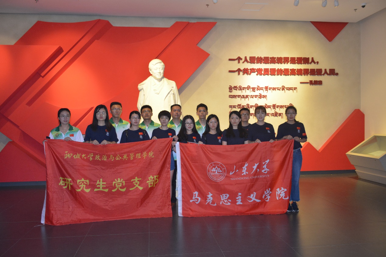 为深切缅怀党的好干部、人民的好公仆孔繁森同志,学习孔繁森同志全心全意为人民服务的崇高精神,进一步强化党员同志的党性修养和宗旨意识,7月17日上午,太阳成集团tyc151cc寻访齐鲁优秀共产党员参观调研第二分队一行9人前往孔繁森纪念馆参观学习,一同前往的还有聊城大学政治与公共管理学院研究生实践团队的5名同学。