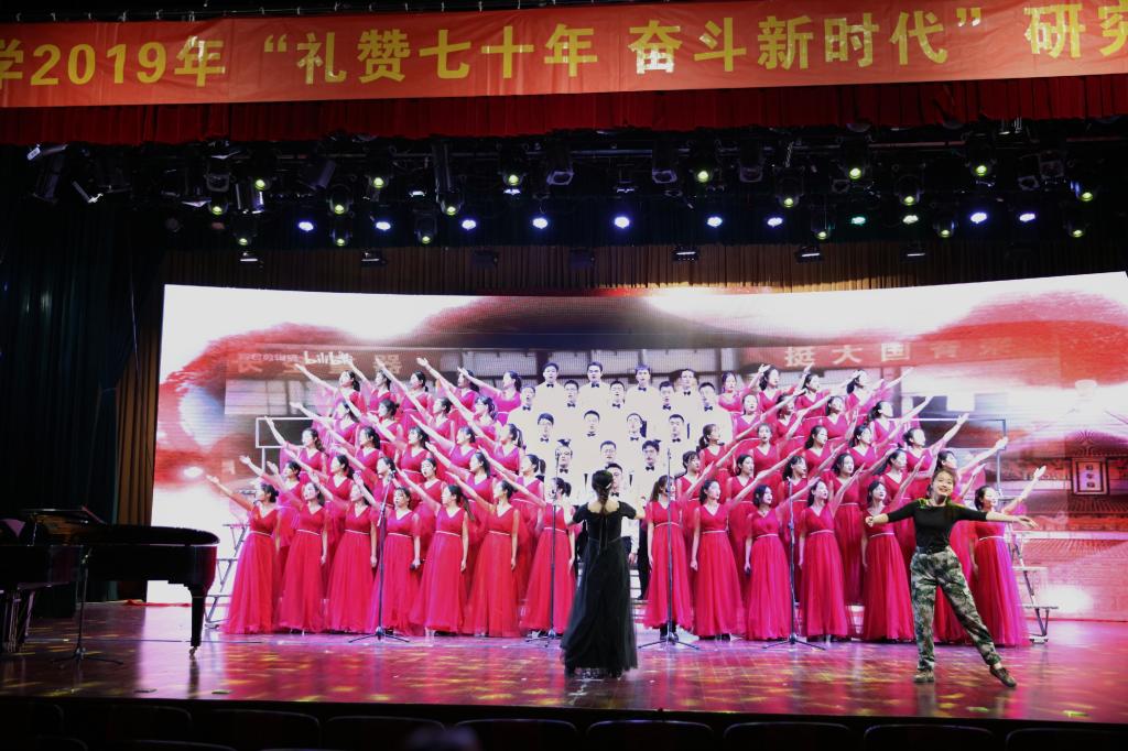 本次合唱比赛旨在讴歌70年来我国取得的辉煌成就,弘扬70年奋力前进的不屈精神,用歌声为祖国礼赞,增强同学们的民族自信心和自豪感,使同学们自觉用优秀精神指引自己的学习和工作。本次合唱共有31支参赛队伍,太阳成集团tyc151cc研究生积极参赛,在比赛前展开了紧张的排练,成员在学习之余,以饱满的热情投入到练唱中,营造了“礼赞七十年、奋进新时代”的浓厚氛围。最终,深情婉转的《不忘初心》和铿锵有力的《祖国不会忘记》使太阳成集团tyc151cc合唱团在舞台上绽放独特光芒。