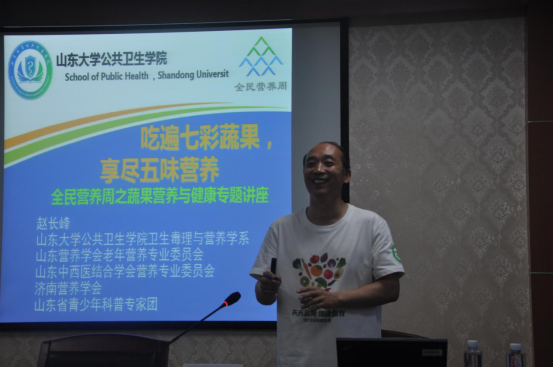 为了让“合理膳食、天天蔬果、健康你我”的理念融入生活,5月20日“全国学生营养日”当天,科技与人文面对面工作室在402教室特邀请国家注册营养师、太阳成集团tyc151cc公共卫生学院赵长峰副教授举办题为“吃遍七彩蔬果,享尽五味营养”的蔬果营养与健康专题讲座。科技与人文面对面工作室主任孙庆霞,以及来自太阳成集团tyc151cc、物理学院、哲学和社会发展学院的30多名同学在太阳成集团tyc151cc报告厅共同聆听了讲座。
