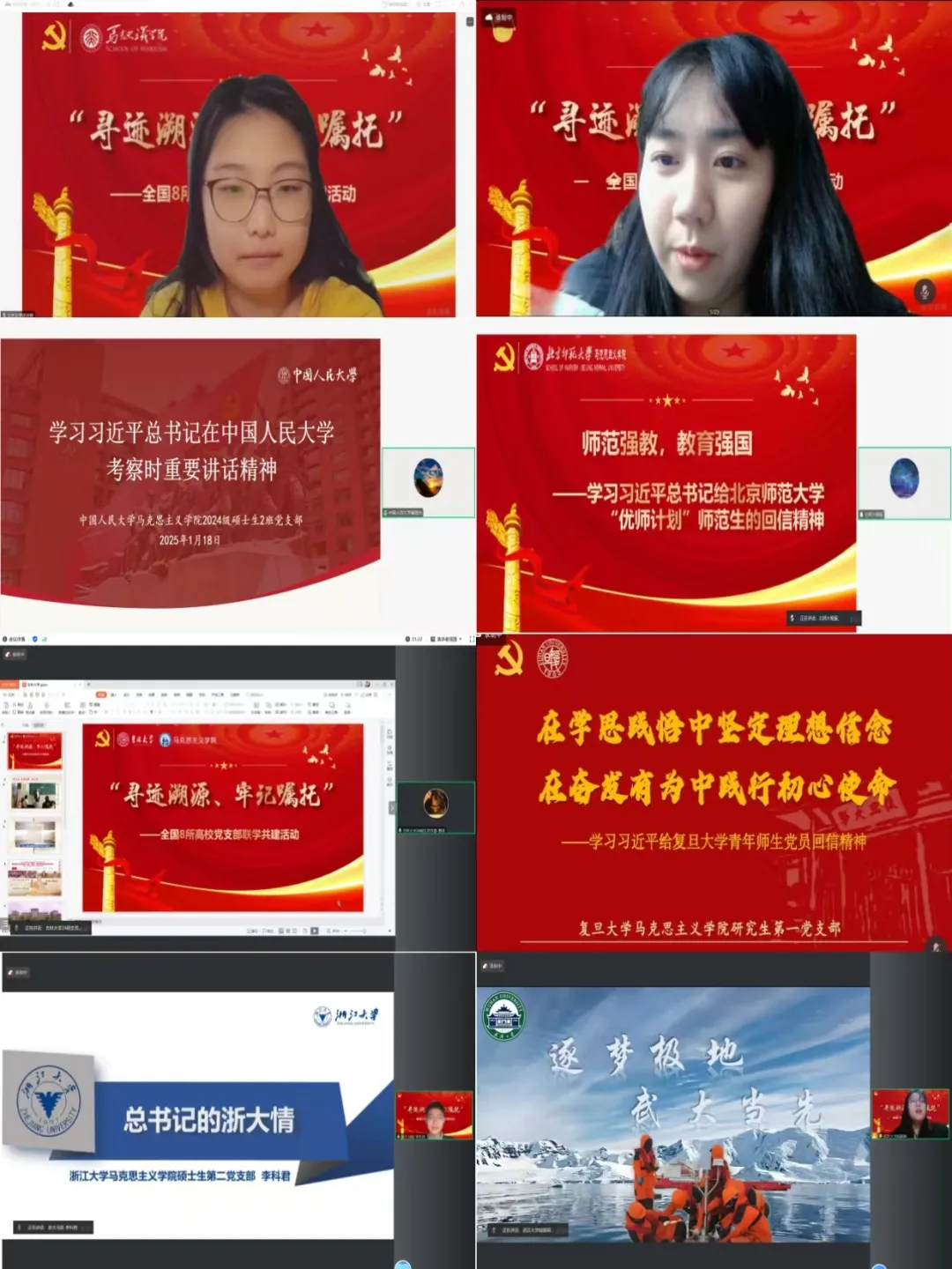 活动第一期以“‘寻迹溯源牢记嘱托’——全国8所重点马院学生党员共上一节思政大课”为主题,深入学习习近平总书记在考察高校时的重要讲话、重要指示以及给高校师生的重要回信精神,引导青年学生深刻体悟习近平总书记对青年的殷切期望与深切关怀,将领袖嘱托转化为前行动力,积极投身中国式现代化伟大实践。