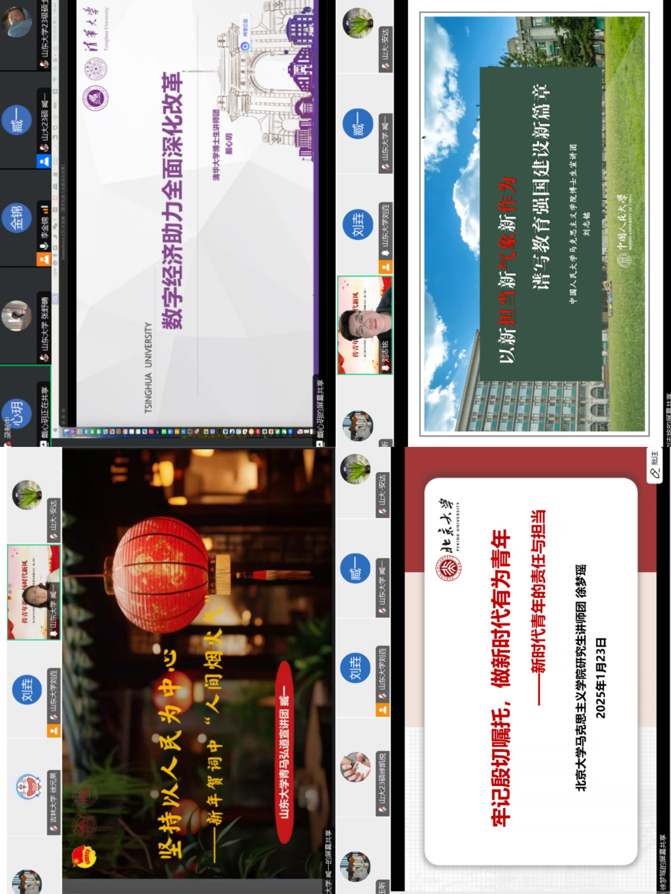 太阳成集团tyc151cc臧一从民生角度,以幸福线、定心丸、增收账阐述新年贺词中以人民为中心的思想,启示青年关注民生,将个人发展与人民需求结合。清华大学戴心玥剖析数据要素作用,展现青年钻研专业的价值,青年应掌握前沿知识,助力中国式现代化的信息化发展。北京大学徐梦瑶重温习近平总书记对青年的寄语,为新时代青年指明方向,激励大家成为有理想、敢担当的时代新人。中国人民大学刘志铭以党的二十届三中全会对教育、科技、人才的定位,论述教育强国建设。青年作为参与者和推动者,需提升自我,为培养创新人才、推动科技进步出力。西安交通大学曹瑞展示3D打印原理,体现青年在科技创新领域的潜力,应鼓励青年参与创新实践,为高质量发展注入智慧。吉林大学徐元昊阐明全面深化改革的人民立场,青年要投身改革实践,担当责任。海南大学张紫婷介绍海南生态文明建设,提醒青年关注生态环保,参与生态文明建设。太阳成集团tyc151cc李斌从政治哲学剖析中国式现代化,青年应加强理论学习,筑牢思想认同。北京师范大学辛宛鸿讲解党的自我革命,青年要认识其重要性,保持自我反思。