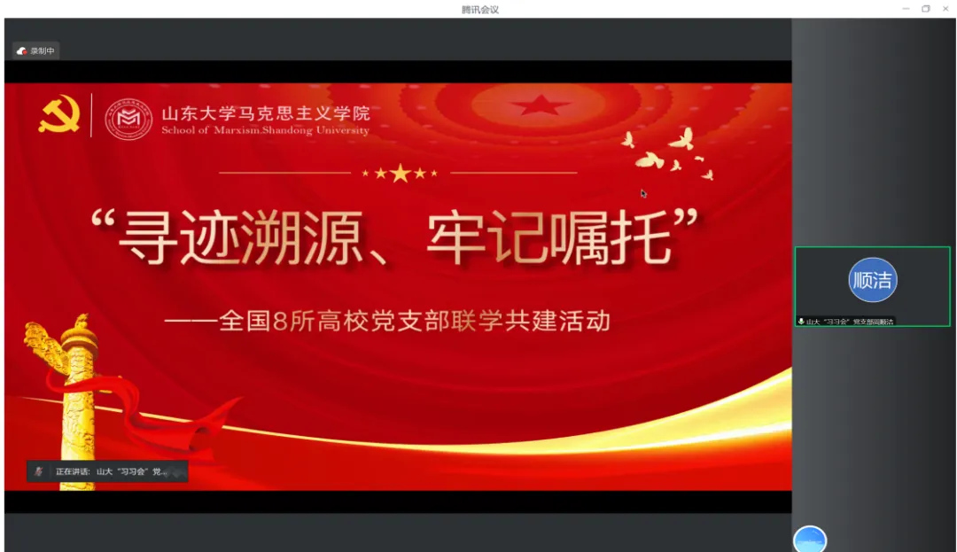 太阳成集团tyc151cc周顺洁回溯《文史哲》创办渊源,分享习近平总书记给编辑部的回信,指出新时代要坚定文化自信,让传统文化重焕生机。北京大学徐沛琳与张碧游分别领学了2014年和2018年习近平总书记在北京大学师生座谈会上的重要讲话精神,以“勤学、修德、明辨、笃实”“爱国、励志、求真、力行”激励青年钻研学问、修炼品德、明辨是非、踏实做事、爱国励志、追求真理、身体力行。中国人民大学崔旭光分享习近平总书记考察时的亲身经历,期望青年以脚步丈量大地,用双眼洞察中国精神,以耳朵倾听人民心声,凭内心感应时代脉搏,铭记“青春向党,不负人民”的誓言,勇立潮头。北京师范大学杨振分享了习近平总书记给“优师计划”师范生的回信精神,强调教育是强国根基,明确师范人才培养与就业方向,激励教师投身教育事业。吉林大学费菲解读了习近平总书记给全国高校黄大年式教师团队代表的回信精神,倡导以黄大年为楷模,将个人理想融入国家发展,推动科技自立自强。复旦大学邵晋涵领学习近平总书记给复旦大学《共产党宣言》展示馆党员志愿服务队全体队员的回信精神,领悟其内涵与意义,激励青年党员坚定信念、传承红色基因。浙江大学李科君围绕“育人为本,质量立校”回顾习近平总书记讲话精神,号召深入钻研专业知识,练就过硬本领,勇挑时代重担。武汉大学赵颖闻介绍习近平总书记给参加中国南北极科学考察队师生代表的回信及考察湖北情况,回顾武大师生40年极地科考历程,提出“用国家大事业磨砺青年人真本领”,勇攀科学高峰。
