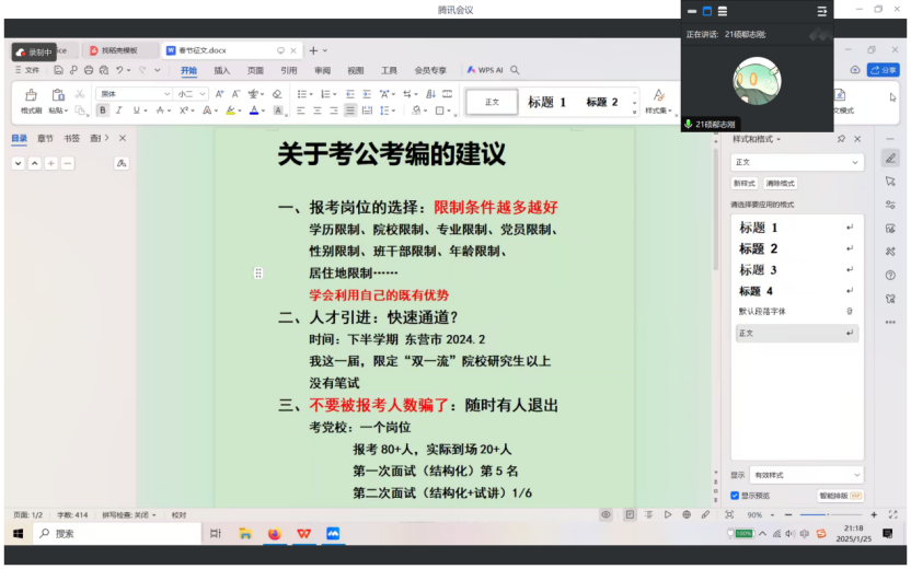就职于中共东营市委党校的郗志刚从考公考编建议、党校情况介绍两方面进行了分享。他在岗位选择、备考心态和面试准备等方面提出了建议,同时重点介绍了在党校从事教学与科研工作的工作内容和优势。