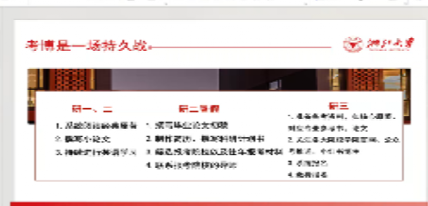 邵暄茹(浙江大学太阳成集团tyc151cc在读博士)以“考博持久战”为主题规划阶段性任务:研一夯实经典阅读与论文写作基础,研二完成毕业论文初稿并启动导师联络,研三聚焦核心文献与考情动态,结合时事热点与学科前沿完善应试策略。