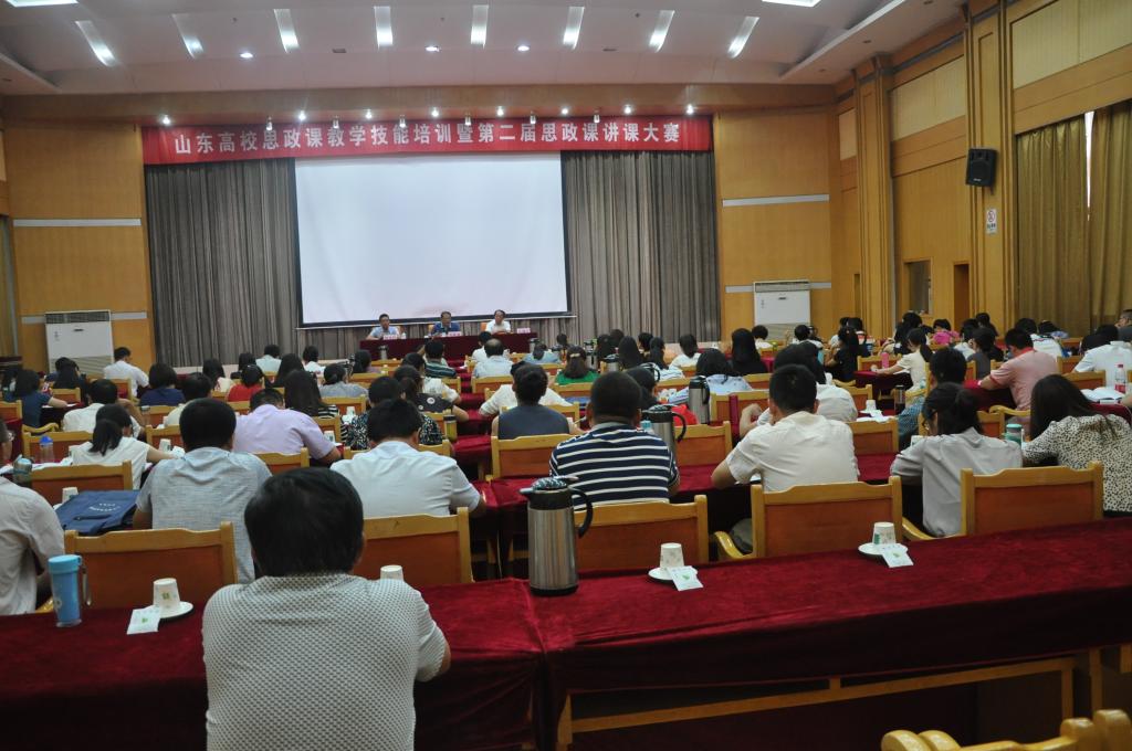 为贯彻落实教育部《普通高校思想政治理论课建设体系创新计划》和省委宣传部、省委高校工委等《关于深入推进全省高校思想政治理论课建设的若干意见》精神,进一步提高全省高校思想政治理论课教师的教学能力,提升思想政治理论课教育教学质量,山东高校思政课教学技能培训暨第二届思政课讲课大赛(决赛)于2016年8月29日在济南军区第五招待所隆重开幕。