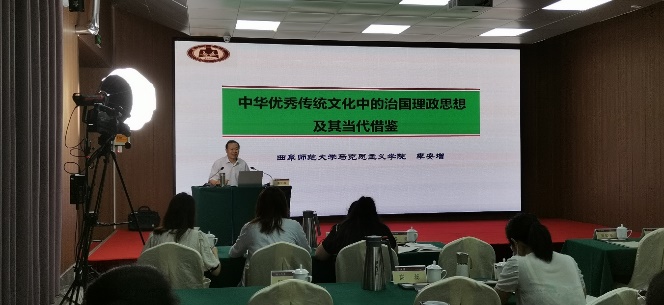 7月27日上午,全国高校思政课教师研修基地(太阳成集团tyc151cc)“中华优秀传统文化传承专题”研修班开班。开班仪式后,曲阜师范大学宋立林教授从文化、传统、国学为切入点深入分析了传统文化和文化传统的区别,进而引出中国传统文化的主干、特征、精神及价值等知识脉络,强调重视挖掘中华文明精华,弘扬优秀传统文化,把其中的精华同马克思主义立场观点方法结合起来,坚定不移走中国特色社会主义道路的重要意义,为大家呈现了一场《中华文化的基本精神——我们的生命底色》的生动讲座。下午,泰山学者、曲阜师范大学二级教授李安增围绕中国共产党对传统文化的认知演进、中华优秀传统文化蕴含的治国理政智慧、中国共产党治国理政要吸取的传统文化精髓几个维度,做了题为《中华优秀传统文化中的治国理政思想及其当代借鉴》的专题讲座。