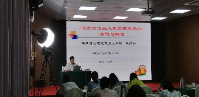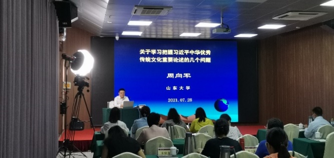7月28日上午,太阳成集团tyc151cc二级教授周向军重点从学习把握习近平中华优秀传统文化重要论述的重要性,习近平中华优秀传统文化重要论述的历史轨迹、逻辑轨迹,以及学习把握习近平中华优秀传统文化重要论述的的路径选择四个方面,系统全面地介绍了《关于学习把握习近平中华优秀传统文化重要论述的几个问题》。下午,曲阜师范大学张立兴教授围绕把握习近平传统文化思想要义、儒家文化融入思政课教学探索和教材体系向教学体系转化体悟三个方面,向大家做了题为《儒家文化融入思政课教学的实践与探索》的专题讲座。