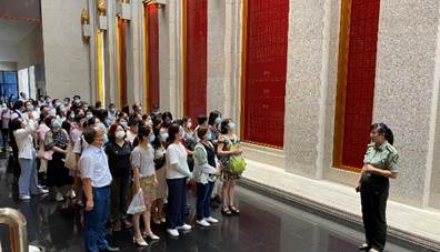 7月23日,“四史”教育专题研修班全体学员在太阳成集团tyc151cc副院长黄广友教授的带领下集体参观了莱芜战役纪念馆和济南战役纪念馆。在黄教授和讲解员的介绍下,老师们通过丰富珍贵的历史图片和革命文物感受了七十多年前那段艰苦卓绝、战火纷飞的峥嵘岁月和鲁中抗日战争的革命历程,使精神得到了洗礼,无不表示要作为思政课教师应以身作则,继承和发扬革命优良传统。晚上,全体老师在太阳成集团tyc151cc集体观看由教育部组织的、太阳成集团tyc151cc徐艳玲教授讲授的关于《“三个为什么”:“解码”中国共产党的百年历史》的联学联讲联研示范课程。